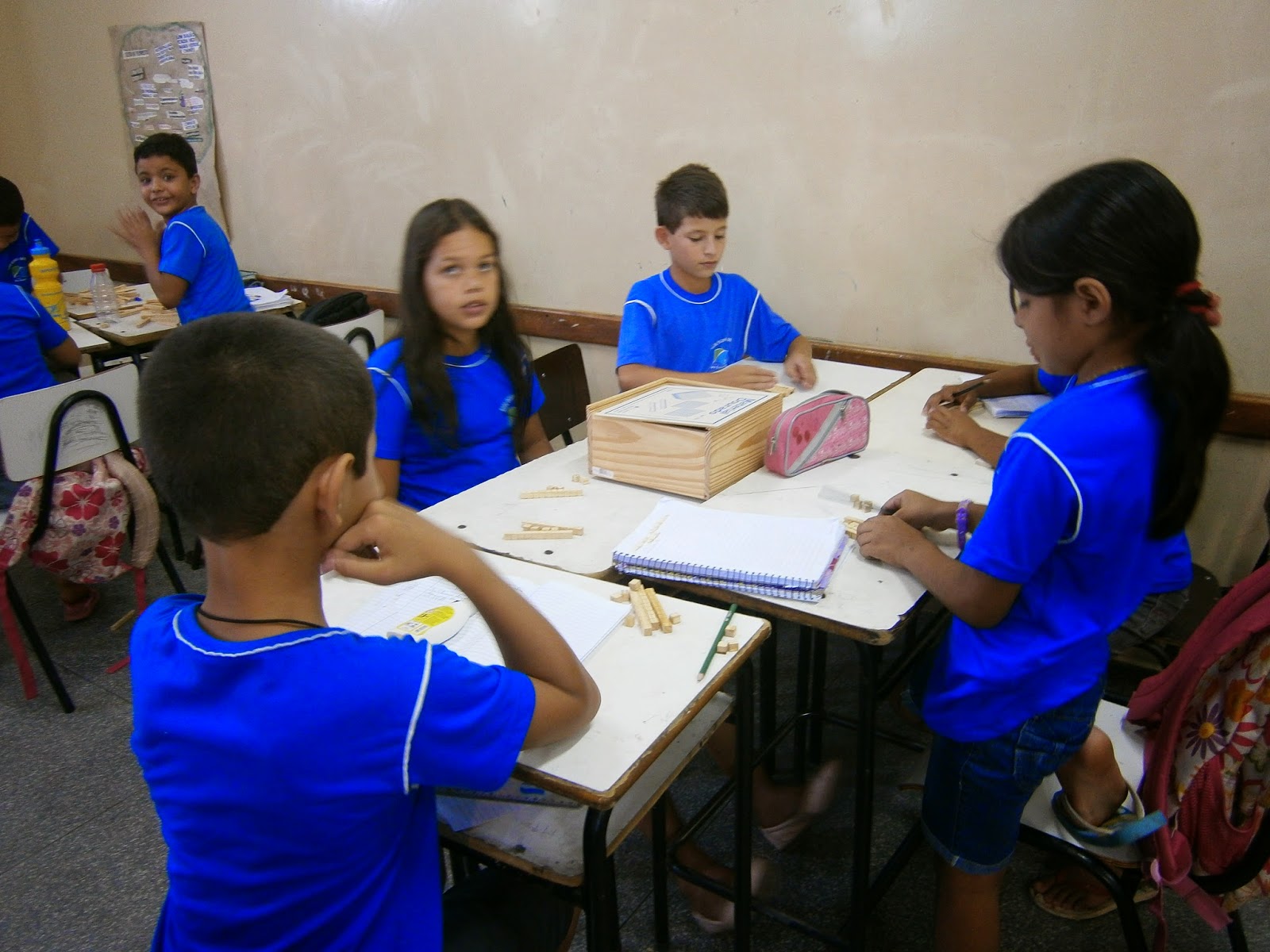 Aula de matemática com a turma do 3º B com a Prof. Bartola Anastácio. O objetivo da aula é ensinar números decimais utilizando Material Dourado.
